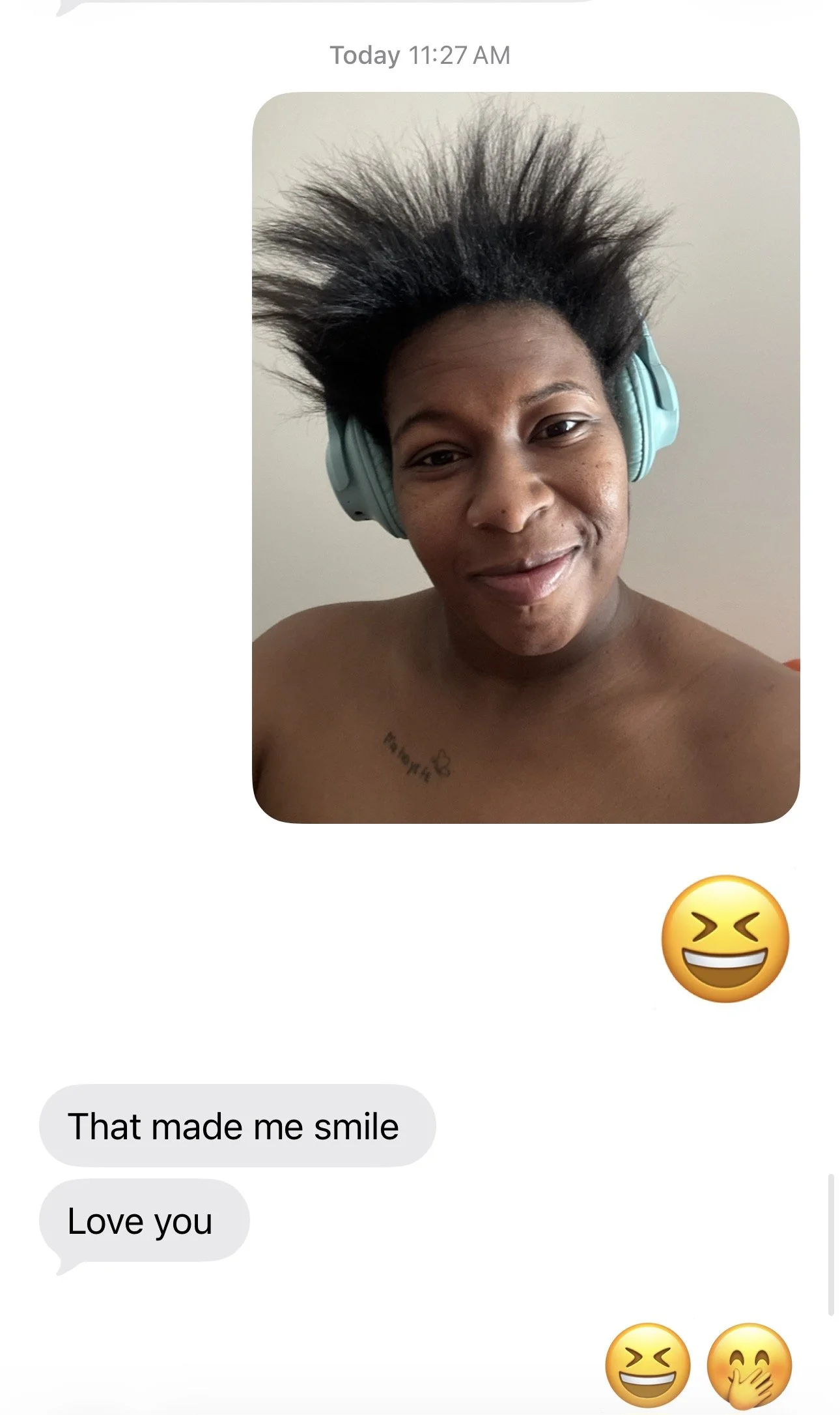The text I sent to my husband after snapping a photo of myself and realizing this is how I been walking around.